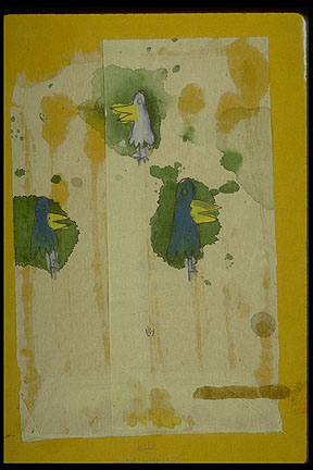 5 x 7 inches (watercolor, crayon and pencil drawing on envelope mounted on manila envelope) collage